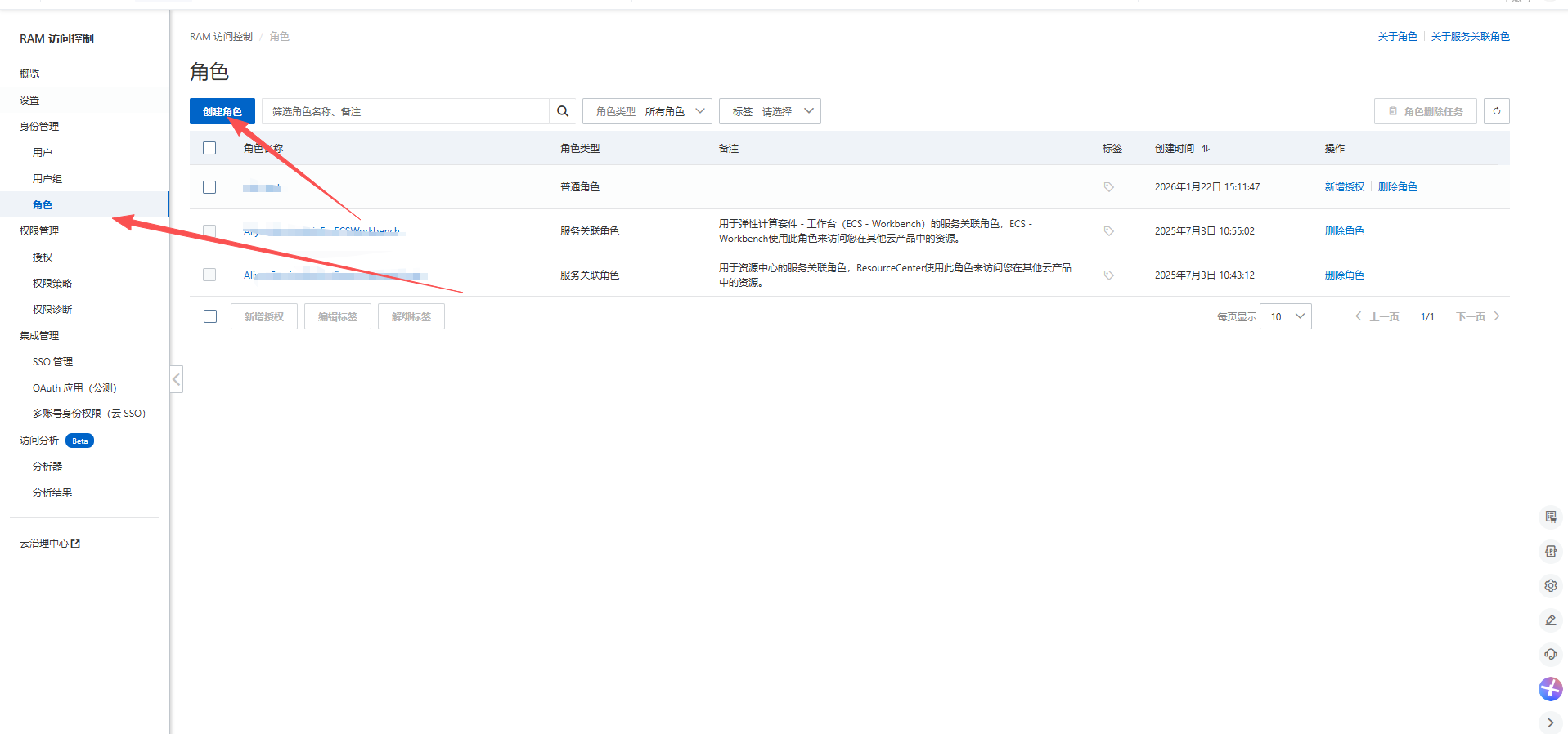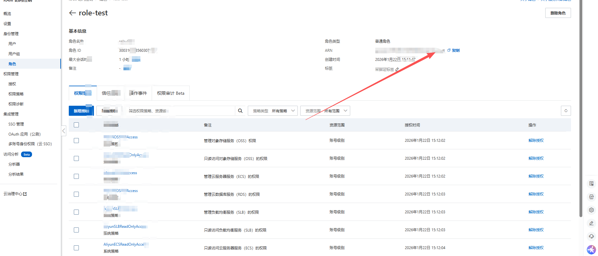3、第三步,新增一个角色然后点击角色名称进入详情里面拿ARN的配置