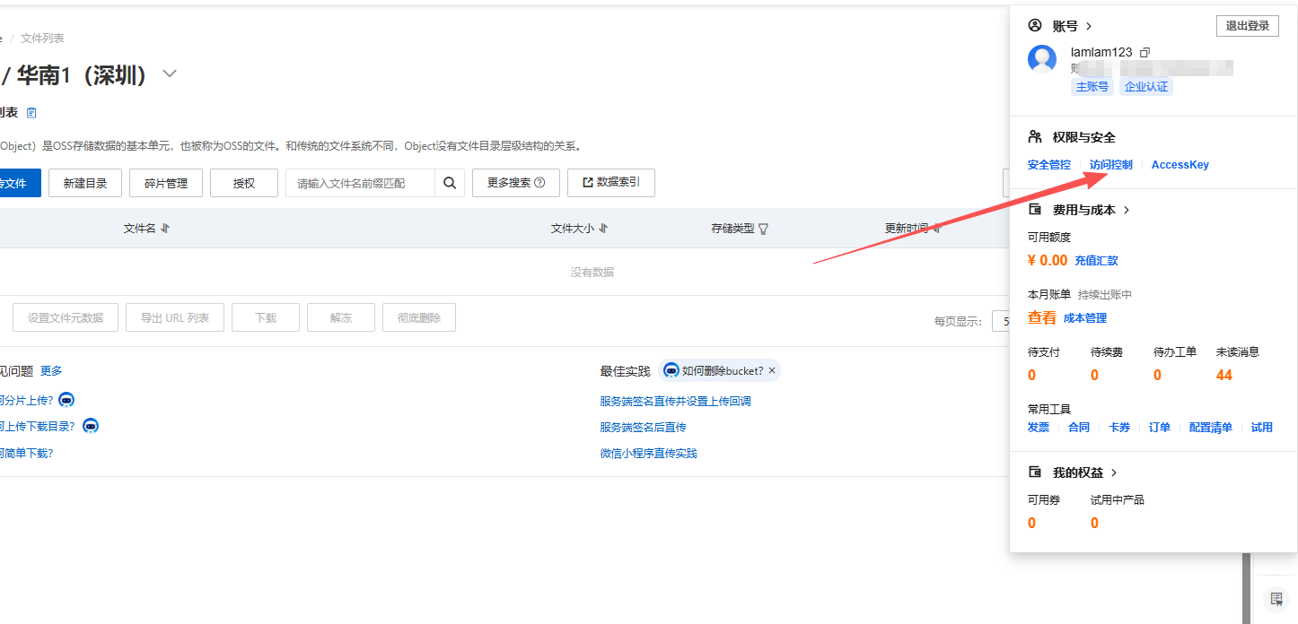 阿里云直传不能使用默认的AK配置需要创建子账户发起直传功能